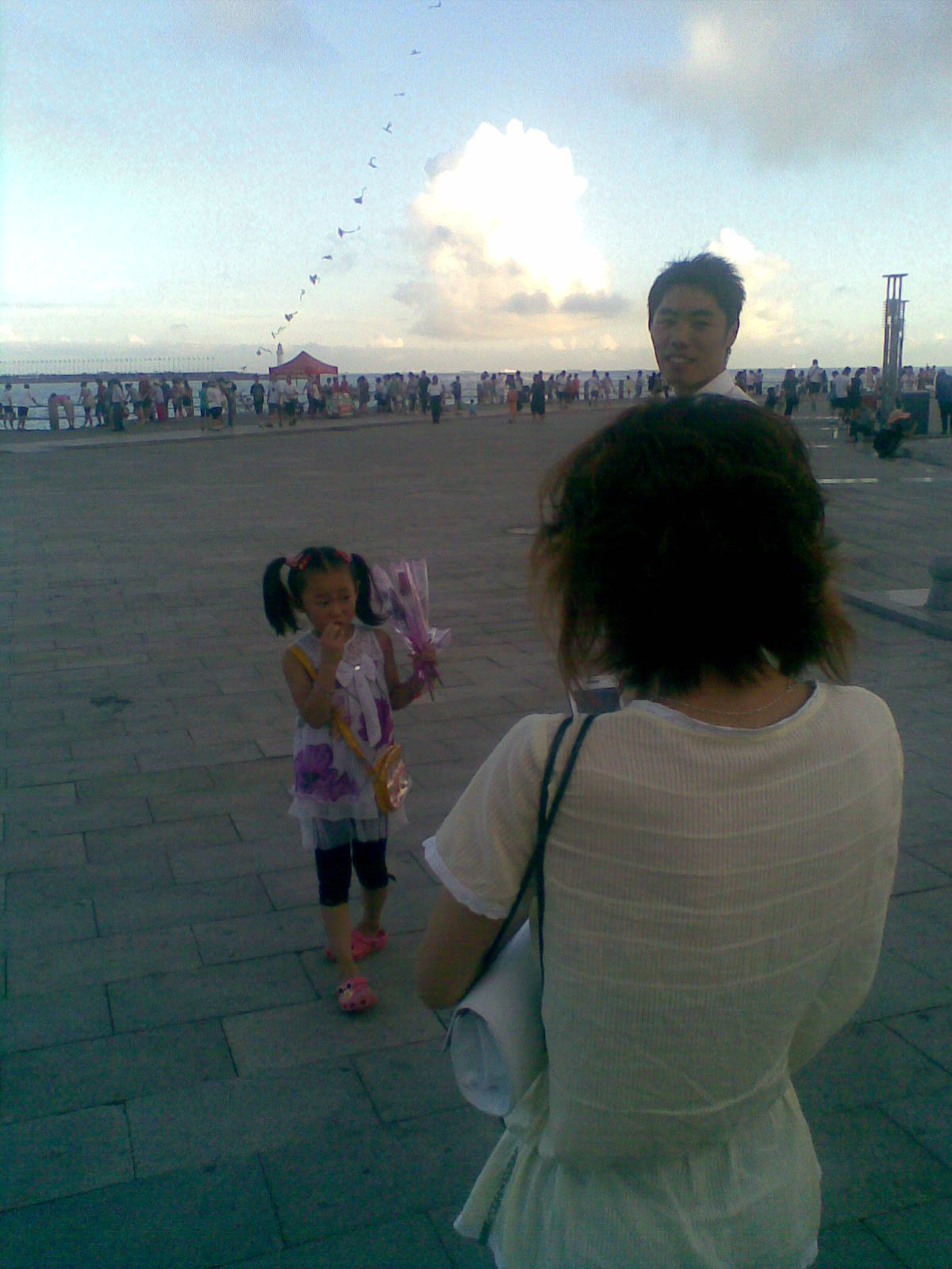 正當(dāng)大家邊聊天邊散步時,一個賣玫瑰的小女孩突然出現(xiàn)了。她來到劉守磊面前,“給漂亮的阿姨買朵花吧”,一句話引的大家哈哈大笑起來。面對滿臉期待的小女孩,我們的劉守磊同志卻做了那么殘忍的決定:不買!以下是劉同志的“惡行”,“知道網(wǎng)絡(luò)”全體成員都表示非!皯嵖辈⒅乱詮娏业摹白l責(zé)”,大家一定要以此為戒!