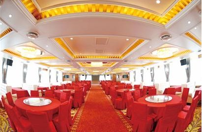 記者注意到,游輪上最惹人注意的莫過(guò)于演藝大廳了,內(nèi)外配有游步甲板、觀光廳、演出臺(tái)、吧臺(tái)、音控室、更衣間等,這一大廳可舉辦會(huì)議慶典、婚慶婚禮等,可提供25桌,208人同時(shí)就餐。這也為舉辦浪漫海上婚禮提供了一個(gè)良好的平臺(tái)。“可以說(shuō),這艘游輪就是流動(dòng)的海上娛樂(lè)中心,也是全方位觀賞青島海濱美景的最佳去處!陛喍晒居嘘P(guān)負(fù)責(zé)人表示,游客可以在奧帆中心白天游玩,晚上看表演,住宿在游輪上,體驗(yàn)青島海上文化旅游。
