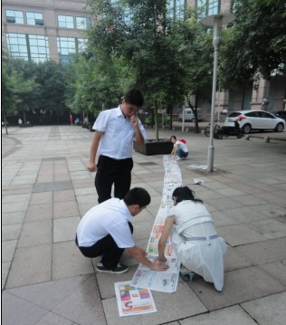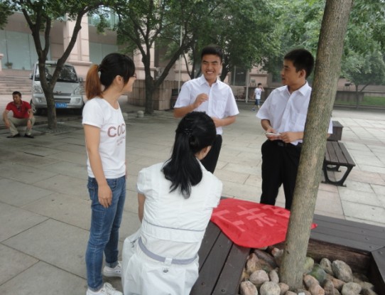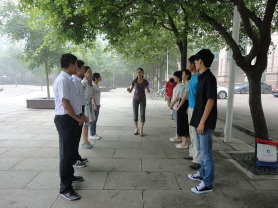 下午15:00,我們的人力資源總監(jiān)帶領新員工來到公司樓下的廣場,將8位新員工分成兩組,進行拓展訓練PK。在正式PK之前,兩個隊伍分別為自己選擇了隊長,取了隊名,設計了口號。在展示隊名和口號的時候,兩個隊伍都拿出了勢不可擋的氣勢,那么接下來的競爭會是如何呢,我們拭目以待。