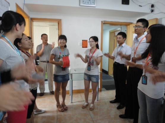 今天是我們可愛的客服部小敏的生日,我們利用晨會(huì)的一部分時(shí)間為她舉辦了簡短的生日慶祝儀式。首先是客服部張經(jīng)理為小敏送上了公司特意準(zhǔn)備的生日蛋糕,并發(fā)表生日祝福。張經(jīng)理首先表達(dá)了自己的歉意,因?yàn)楣ぷ鞣泵,她自己都差點(diǎn)忘記今天是小敏生日,隨后對(duì)小敏送上生日祝福,并提議全體員工為小敏唱生日歌。