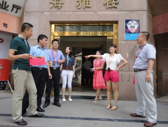 上個月,邢經(jīng)理帶領(lǐng)的商務(wù)三部的業(yè)績遺憾墊底,他們毫不含糊的履行了約定,并且是商務(wù)三部全員出動,與邢經(jīng)理共同接受懲罰,顯示出了團隊的力量。爬完樓梯回來之后,三部豪氣干云,立志要扳回一局,并且霸氣的說,輸?shù)娜瞬缓巴,贏家永遠也不能說停,因此這個游戲規(guī)則也就順延到8月初。