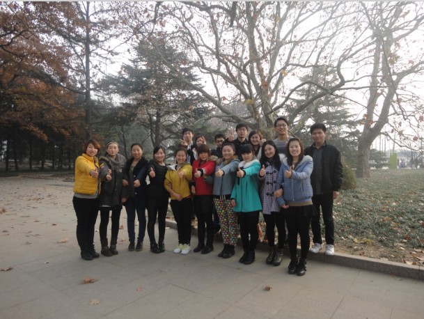 商務(wù)部跟行政人事部剛到公園,就先來了一張大合照,男的帥,女的靚。