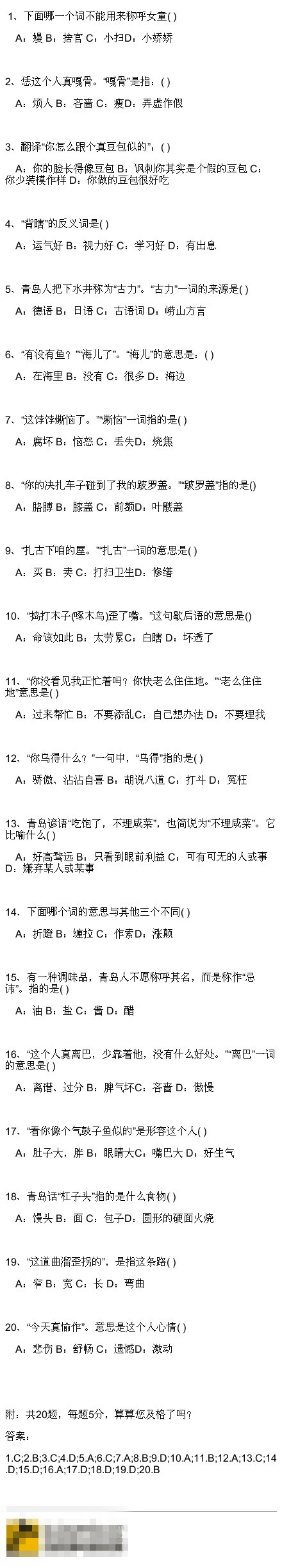 不管你是老青島,還是小青島,還是外地的,都可以測測這幾年你的青島話水平。
