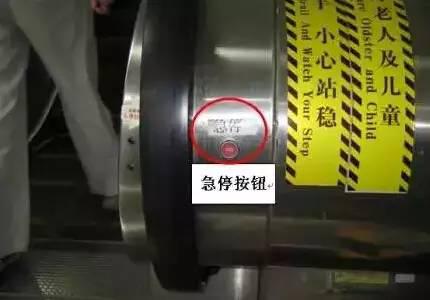 無論上下方向,手扶電梯的一側(cè)下方都應(yīng)有紅色的緊急停止按鈕,按鈕位置通常選擇在不會(huì)被輕易觸發(fā)的地方,但只要仔細(xì)留意其實(shí)比較容易找到。