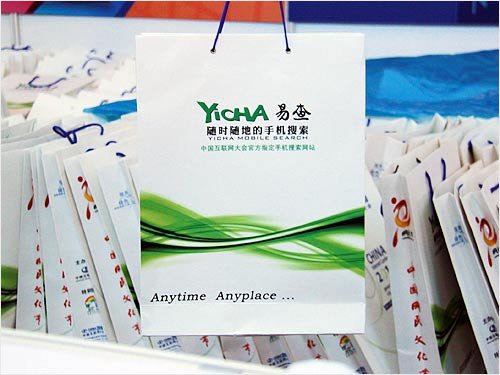 與3G門戶搶奪廣告牌不同的是,另一移動(dòng)互聯(lián)網(wǎng)企業(yè)易查則搶奪宣傳袋,每個(gè)現(xiàn)場嘉賓簽到后都會(huì)領(lǐng)取一份外面寫著“隨時(shí)隨地的手機(jī)搜索”的易查廣告語。此外,UC WEB在本次大會(huì)上也重金投入,取得大會(huì)指定瀏覽器的合作伙伴資格。