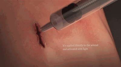 近日,悉尼大學(xué)、哈佛大學(xué)和美國東北州立大學(xué)的研究人員就合力搞出了一種超級(jí)膠水Me Tro,只要將它涂抹在傷口表面,不打針不吃藥,也不用縫合,用紫外線照一照,只需要60秒,就能完成整個(gè)傷口的縫合工作。