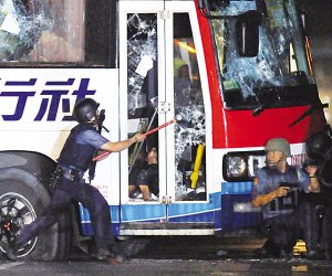 就在傍晚7點半,車上爆出槍響,當時情況混亂,一說綁匪在車上開槍,另一說是警察展開攻堅,而根據(jù)趁亂逃出的司機透露,車上的另15位人質恐怕已全數(shù)被殺害。就在槍手殺死全部人質的消息傳開后,當?shù)氐木酵粨絷犻_始砸車窗,準備強行進入巴士展開攻擊,并向車內(nèi)丟入催淚瓦斯。
