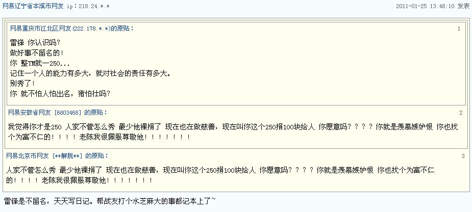 我感覺(jué)最后一樓的兄弟最有才,“雷鋒是不留名,天天寫(xiě)日記,幫戰(zhàn)友打個(gè)水芝麻大的事都記本上了”,哈哈哈,真給力!