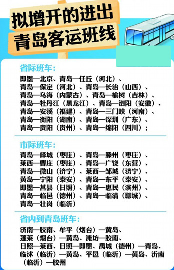的公示,青島擬增開27條長途客運班線 ,此外,省內(nèi)其他縣市也擬開通數(shù)條到青島的市際客運班線(均見圖表)。