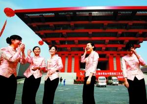 昨日,上海世博會(huì)中國館竣工,專為到館貴賓服務(wù)的服務(wù)員也正式上崗。