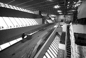 上海世博會(huì)中國館內(nèi)部場(chǎng)館,工人正在進(jìn)行裝修施工。鈕一新 攝