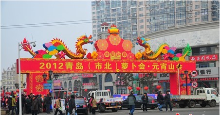 1月31日上午10時28分,2012青島(市北)蘿卜會•元宵山會在昌樂路青島文化街盛大開幕。據(jù)悉,本屆山會舉辦期間為2012年1月31日(正月初九)—2012年2月6日(正月十五),開幕式當天客流量達39萬人次,銷售蘿卜92噸,雙雙創(chuàng)下了蘿卜會•元宵山會的新紀錄。
